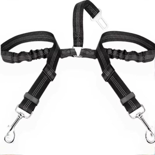 Dog Seat Belt, Double Dog Seatbelt Adjustable Vehicle Safety Leash with Elastic Bungee Buffer, Reflective No Tangle Y Shape Two